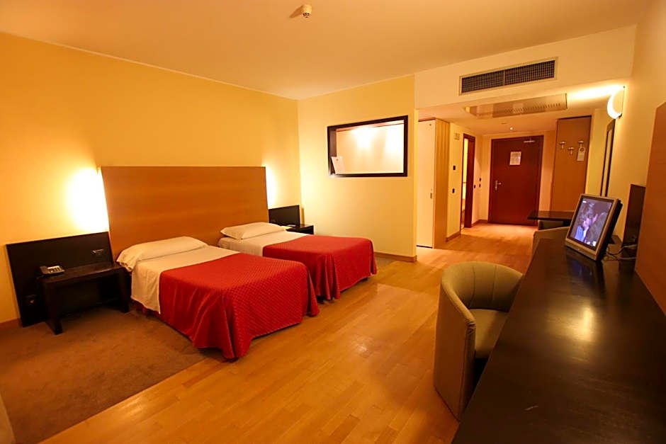 For those seeking comfort and space for a group stay, Golf Hotel Milano offers the spacious Comfort Quadruple Room. This room boasts 484 square feet of modern design and includes two twin beds and a queen-size bed, accommodating up to four adults. With soundproofing and free toiletries, your stay in this room promises both relaxation and convenience. Whether you're traveling with family or friends, the Comfort Quadruple Room provides the perfect retreat after a day of exploring Fizzonasco.
